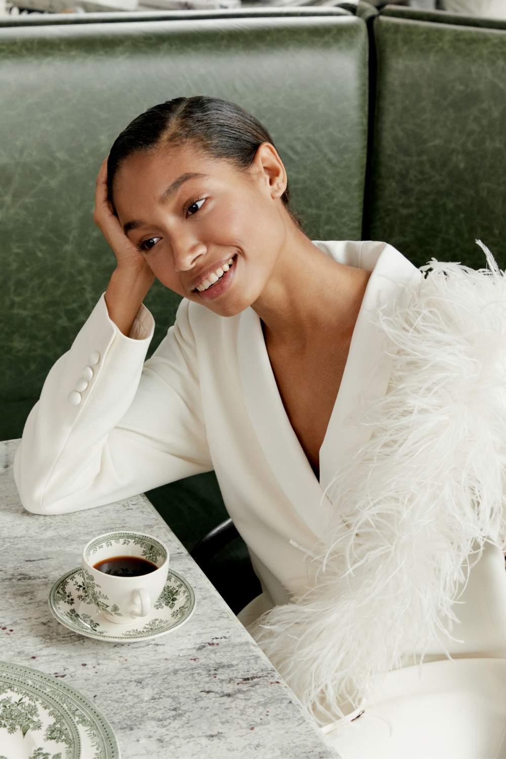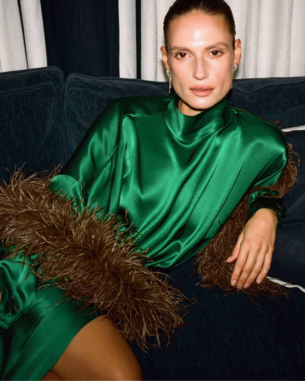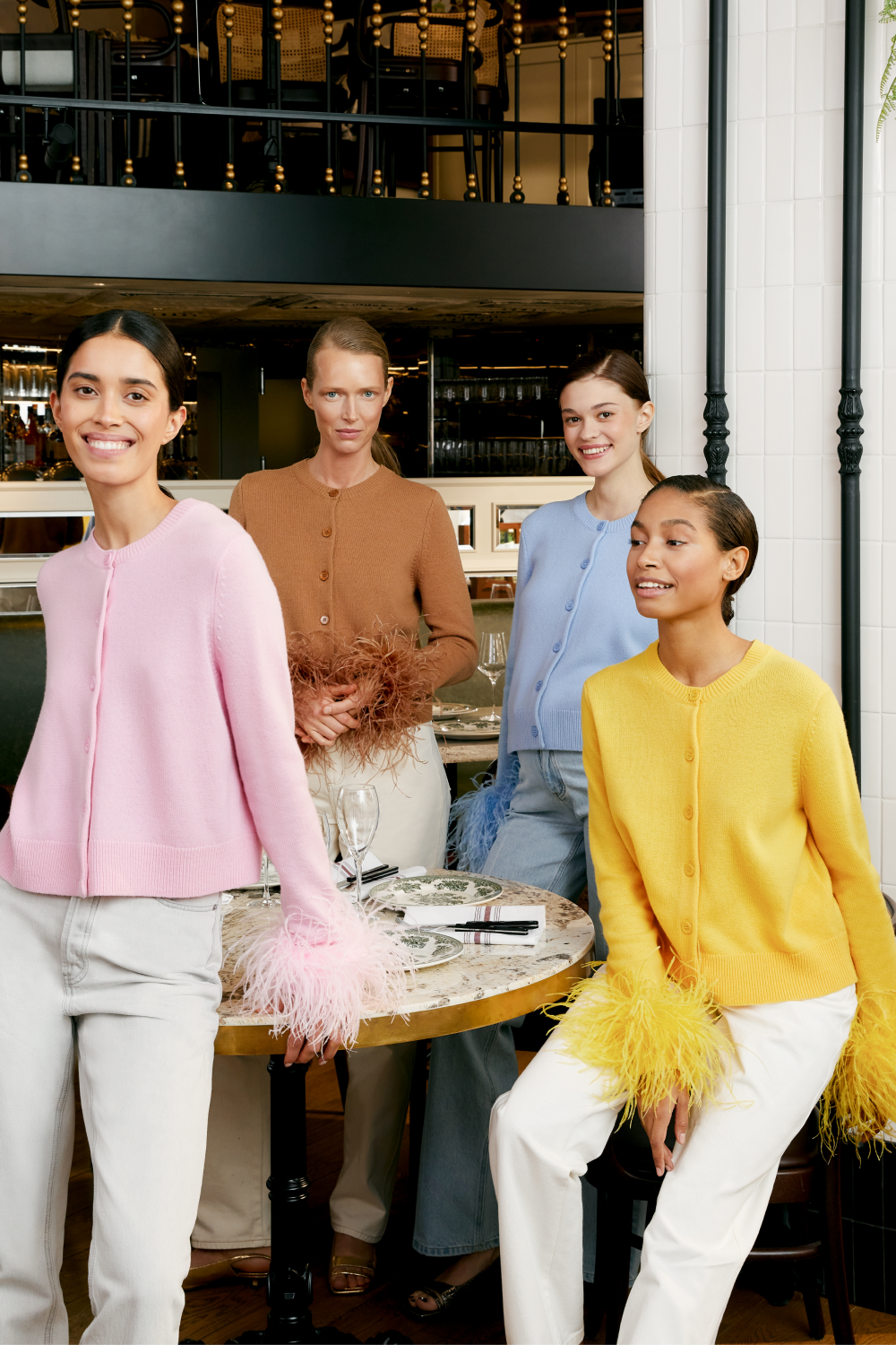 Помимо того, в релизе представлены вещи для празднования в кругу друзей — яркие кардиганы и топы с перьями, а также платья из нежного мохера, которые помогут создать настроение. Вещи выполнены из шелка, перьев, глянцевой тафты, твида с поблескивающими нитями и трикотажа.