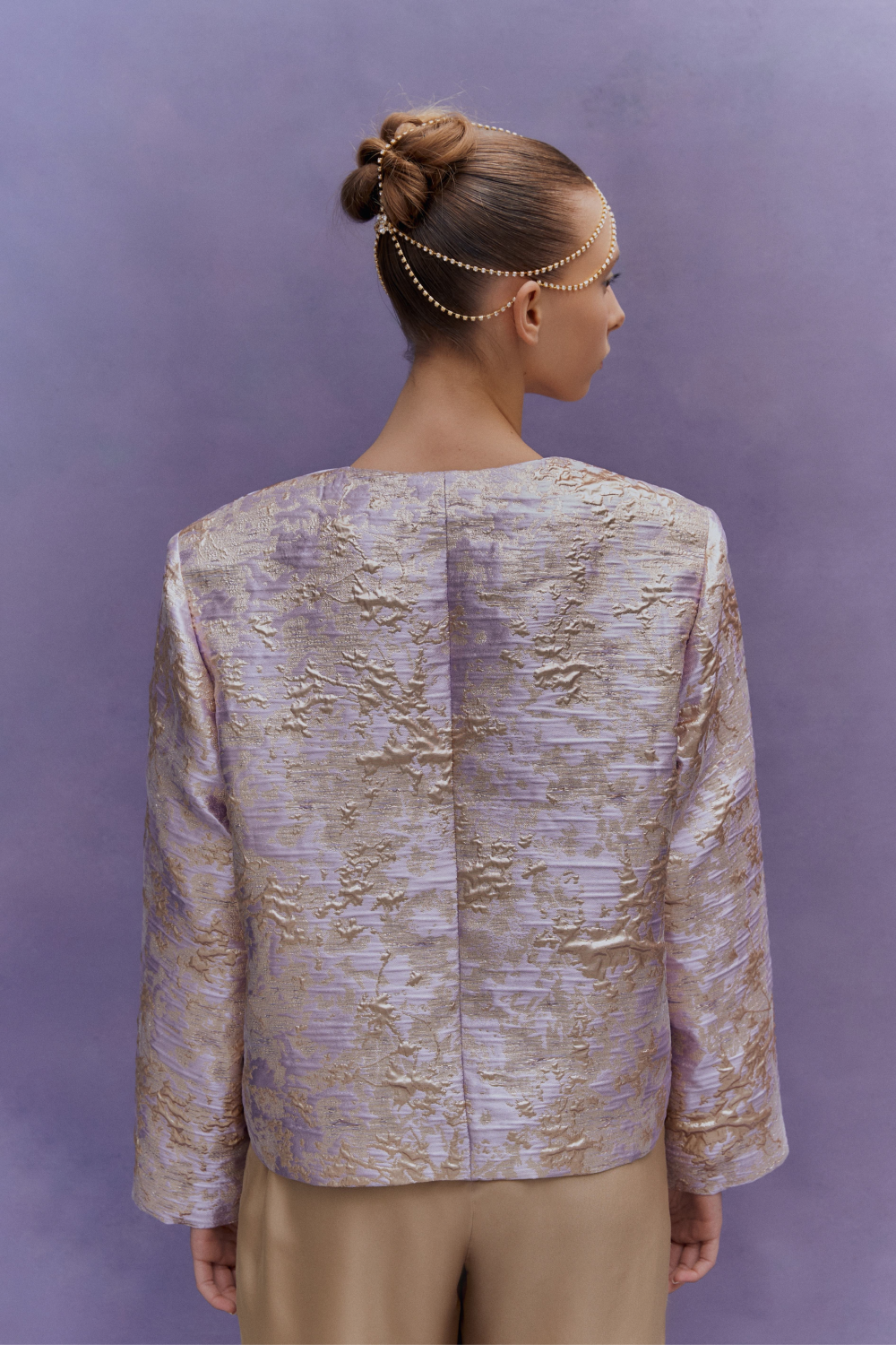 Самый популярный топ Abitu в этом сезоне представлен в оттенках Amber и Persian Red — золотисто-желтом и насыщенном красном, а Cinderella Cream выполнен в сочетании кремового и голубого с объемными серебристыми цветами. В коллекции также можно найти бронзово-лиловый жакет Sugar Plum и объемный золотисто-сиреневый жакет с яркой подкладкой Oriental Purple.
