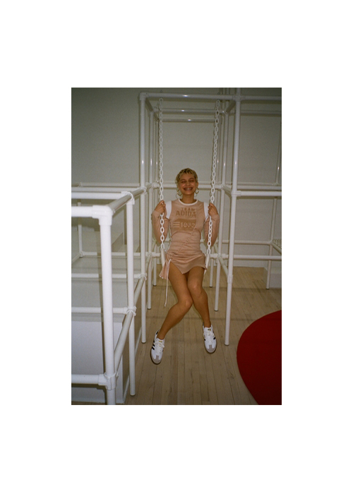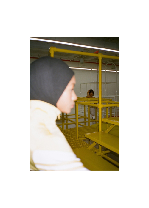И сняла моделей прямо на презентации — среди разноцветных труб и тренажеров