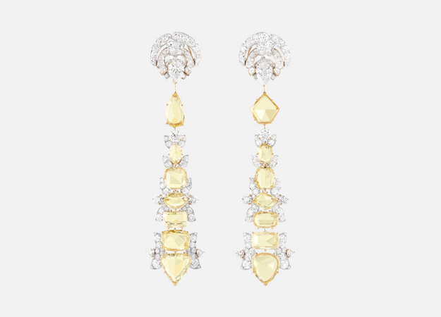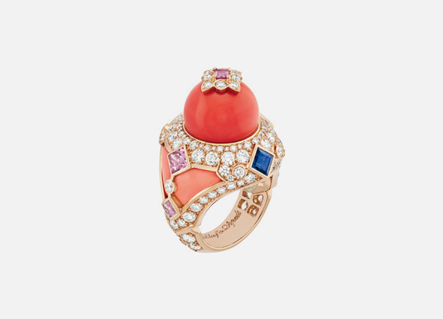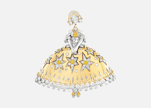 Драгоценные камни сочетаются в украшениях с инновациями, среди которых — секретный механизм, который позволяет одним щелчком трансформировать подвеску в брошь и невидимые закрепки, создающие иллюзию «отсутствия» металла.