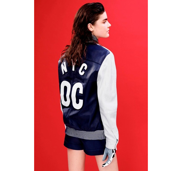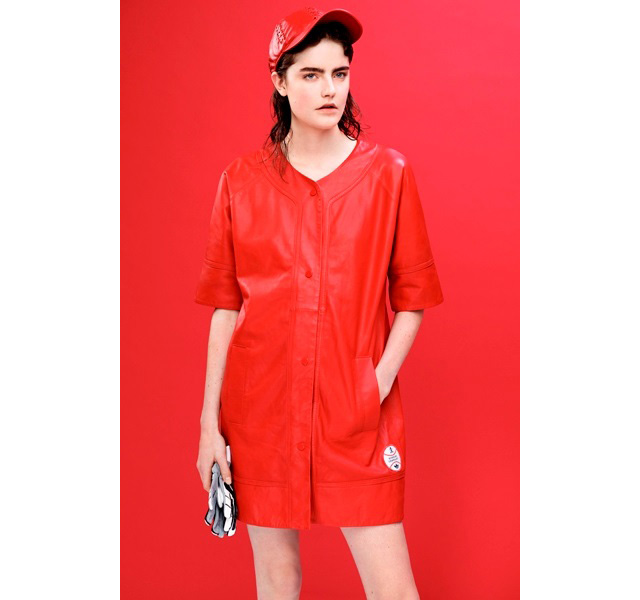 С бейсбольной площадки в коллекцию перекочевали шнуровки на перчатках — они украшают обтягивающие платья, ветровки, мини-юбки — и другие элементы бейсбольной формы. Полосатые рубашки, яркие кепки, кожаные кофты и шорты насыщенных цветов с эмблемами OC на спинах, кожаные платья-рубашки и, конечно, бомберы с нашивками и значками.