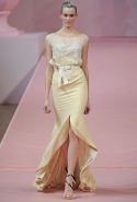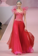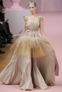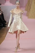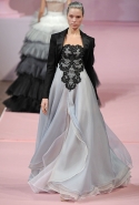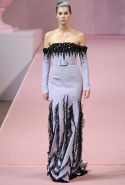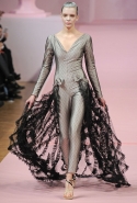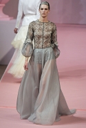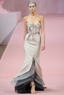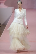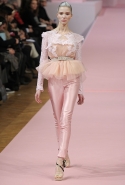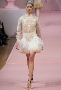 По его собственным словам, отправной точкой для дизайнера в создании данной коллекцией послужили различные техники и приемы шитья. А основными материалами — классические кружева шантильи и тюль. Комплекты с брюками и топами из этого воздушного сочетания выглядели наиболее свежо — очевидно, что обращение к брюкам Рафа Симонса в коллекциях couture дома Dior возродило интерес к этому предмету многих его коллег. "Симонсовское" влияние ощущается и в платье на основе смокинга и ансамбле с пиджаком и пышной юбкой — андрогинный элемент в сочетании с классической "кутюрной" пышностью смотрится всегда интересно и выразительно.