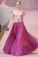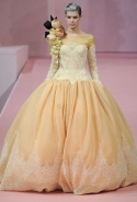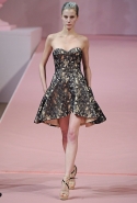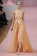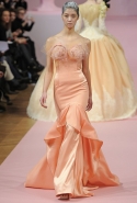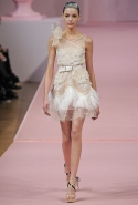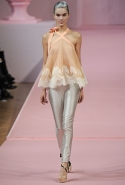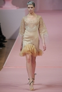 Что безусловно удалось модельеру, так это развитие всей этой кондитерской, воздушной пудрено-кружевной темы в карамельных розовых, персиковых и бежевых тонах, иногда с акцентами черного (кстати, сочетание "пудрового розового" и черного стали главным элементом интерьера бутика Alexis Mabille, разработанного парижским дизайн-бюро Humbert & Poyet). Многие образы, выполненные в этом ключе, не претендуя на оригинальность или новизну, были просто красивы и женственны.