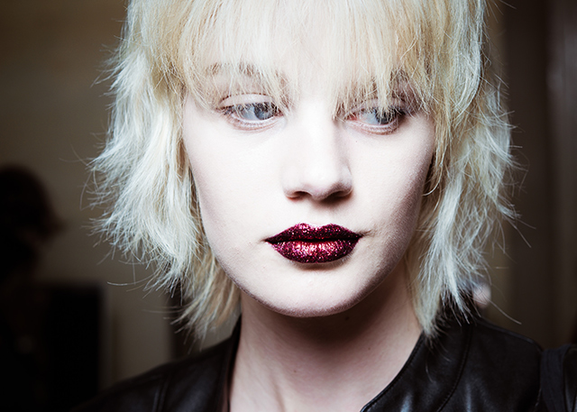 Эти винные губы, покрытые мерцающим глиттером, мы видели в начале июля, когда МакГрат красила моделей на показе Atelier Versace Haute Couture 2016—2017. Лучше всех их тогда показала Белла Хадид. В ее исполнении такие губы казались чем-то вполне себе жизнеспособным в условиях «неподиума».