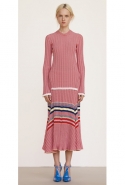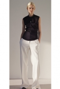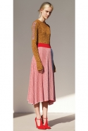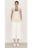 В новой коллекции Фиби Файло продолжает развивать тему вязанных лапшой уютных костюмов, дружно начатую дизайнерами в осенне-зимнем сезоне — только вместо брюк на этот раз предлагает длинные, словно немного деформировавшиеся после стирки юбки. А связанные в той же технике водолазки оказываются в компании с юбками в мелкую-мелкую складку (именно этот наряд демонстрировала Дарья на самом красивом кадре из рекламной кампании), и все рельефные поверхности Файло щедро покрывает дробящимися на глазах абстрактными рисунками. К счастью, глаз отдыхает на минималистичных и монохромных вещах, которых в коллекции примерно столько же, сколько и пестрых, цветных. Это и пальто, и объемные геометричные жилеты, и брюки разных фасонов, и практически идеальные кюлоты, и длинные юбки, и глухие комбинезоны.