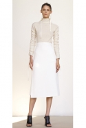 Рекламная кампания с неизменной Дарьей Вербовой в главной роли появилась в Сети чуть раньше, чем сам лукбук коллекции. Поэтому мы заранее знали, к чему себя готовить: на вышедших кадрах уже засветились "лапшичная" рыжая водолазка, плиссированная крапчатая юбка и пара лаконичных пальто жестких геометричных форм.