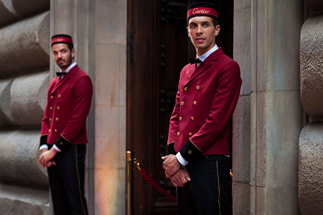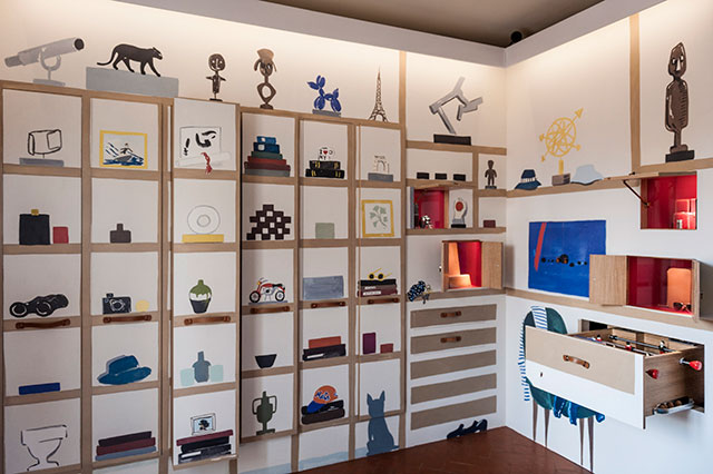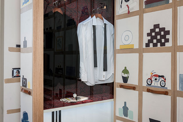 Внутри было устроено несколько комнат, призванных представить мир мужчины, носящего часы Drive de Cartier, — библиотека, гардеробная, комната для рисования. Для этого Cartier собрали замечательную команду самых актуальных художников и дизайнеров. Рисунки на стенах гардеробной и комнаты для рисования делал греческий мультимедиа-художник Константин Каканиас, библиотеку оформлял восходящая звезда парижского интерьерного дизайна Тристан Ор. Серджио Колантуони —редактор, стилист, арт-директор, дизайнер и просто эталонный модник, которого фотографировали все собравшиеся фотографы, собирал композиции для выдвигающихся панелей в гардеробной. Панелей таких шесть и каждая посвящена важному для мужчины Drive пространству: Нью-Йорку (черный токсидо и набор белых рубашек Caruso), Парижу (цветочные горшки и резиновые сапоги), Токио (хаори и фарфоровая посуда), Лондону (перчатка Бэтмена и винтажные фото в маске Бэтмена), Биаррицу (пляжный махровый халат и винтажная доска для серфа) и натурально космосу, потому что такой мужчина путешествует не только по земле. В каждой выдвижной витрине собраны предметы, представляющие тот или иной город плюс подходящие часы Drive de Cartier. И прелесть каждой — в тонко продуманных мелких деталях. Серджио, показывая каждую, рассказывал, как важно для него было находить и располагать эти детали. Например, в парижской витрине, где Drive man совершенно небанальным образом представлен этаким садовником, лежит наполовину выдавленный тюбик специального крема для рук, который используют при работе в саду.