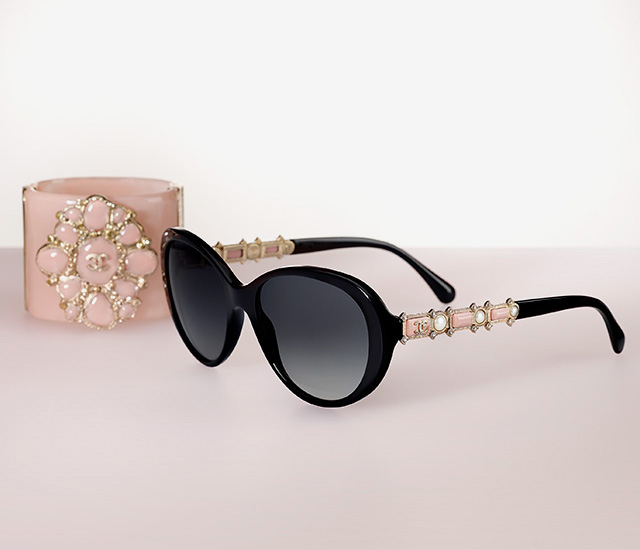 В коллекции Bijou сошлись — нет, не лед и пламень — но тоже весьма неочевидные партнеры: оптика и бижутерия. Оптические и солнцезащитные очки Chanel на этот раз декорированы жемчугом, стразами и другими характерными для украшений элементами. На дужках новых очков деликатно разместились по 3—4 элемента бижутерии в стиле Chanel: на оптических — скромнее и меньше, на солнцезащитных — крупнее.