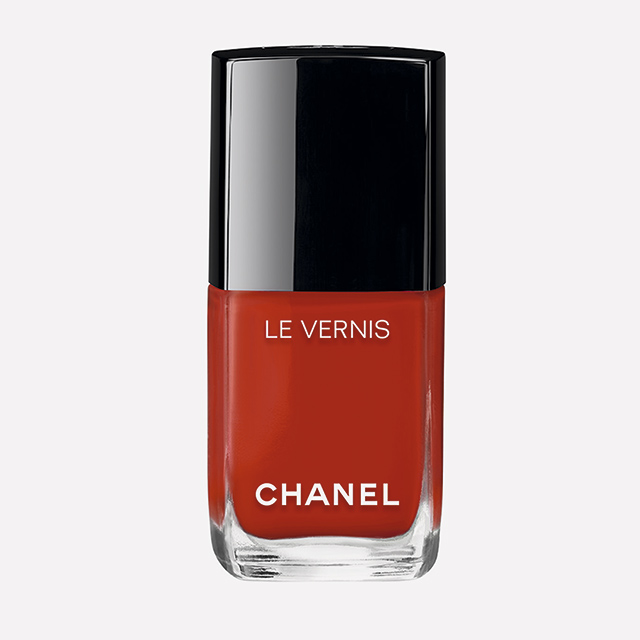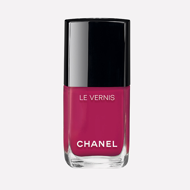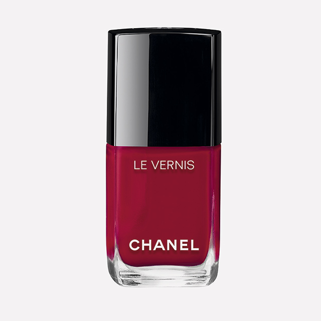 Вместе с линейкой из восьми цветов Rouge Coco Stylo бренд представил 11 стойких лаков для ногтей. Можно подбирать цвет маникюра к помаде или играть на контрасте, например, сочетая насыщенную пурпурную Recit с темно-синим Marinière. Модная в этом сезоне тельняшка — прекрасная компания для такого образа.