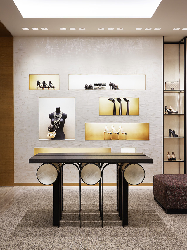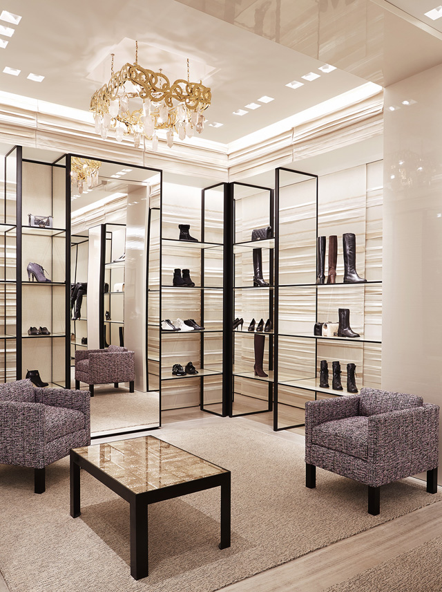 Оформил бутик давний друг Карла Лагерфельда Питер Марино, который работает с Chanel с незапамятных времен и создает проекты для всех магазинов французского дома. В пространстве площадью 380 квадратных метров сошлись классические коды марки (среди использованных для оформления материалов даже твид) и произведения современного искусства, созданные специально для бутика.
