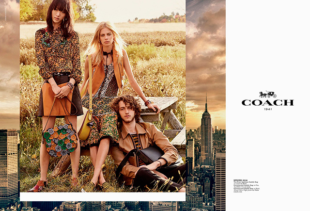 Главными героинями весенне-летней коллекции Coach стали девушки из американской глубинки, которые лучшие годы проводят не в интерьерах из сериала «Сплетница», а в романтических прогулках по полям. Но, конечно, втайне мечтают о том, что вот-вот вырастут и улетят из своих тихих семейных гнезд в большие города. Так что кадры, снятые на природе, Стюарт Виверс решил объединить с традиционно городскими пейзажами, наложив их друг на друга. Воплотить задумку в жизнь дизайнер доверил фотографу Стивену Майзелу.