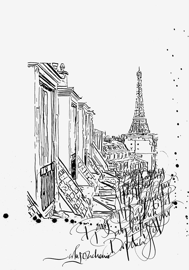 Помимо растений, для Darphin Ушнир также изобразил популярнейшие достопримечательности Парижа: Пале-Рояль, Вандомскую площадь, площадь Колетт, Остров Сен-Луи, Эйфелеву башню. Каждую иллюстрацию украшают фирменные чернильные пятна, которые Ушнир использует вместо подписи.