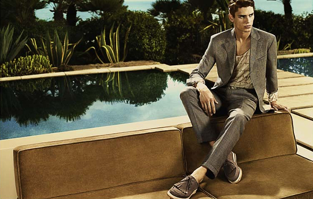 Съемки новой рекламной кампании Salvatore Ferragamo прошли в Калифорнии, и, честно говоря, сложно придумать лучшее обрамление для нарядов из весенне-летней коллекции, чем бассейн под открытым небом и раскаленная, залитая солнцем архитектура. На снимках, сделанных фототандемом в лице Мерта и Маркуса, Дарья Вербова отдыхает на софе, утомленная палящими лучами, в компании Артура Госсе — само воплощение современного гламура. Длинные приталенные платья с текстурными вставками дополнены аксессуарами с соломенными мотивами, а принты в бежево-зеленой гамме идеально сочетаются с окружением.