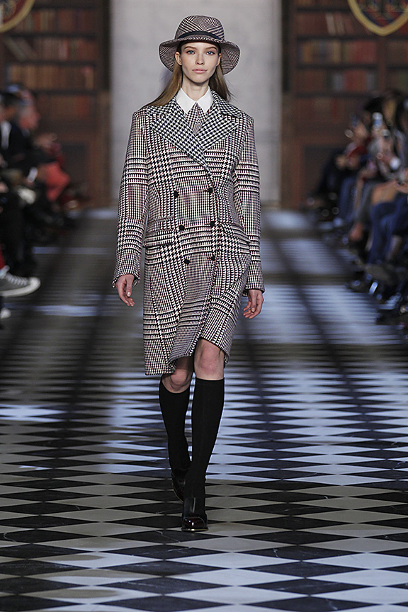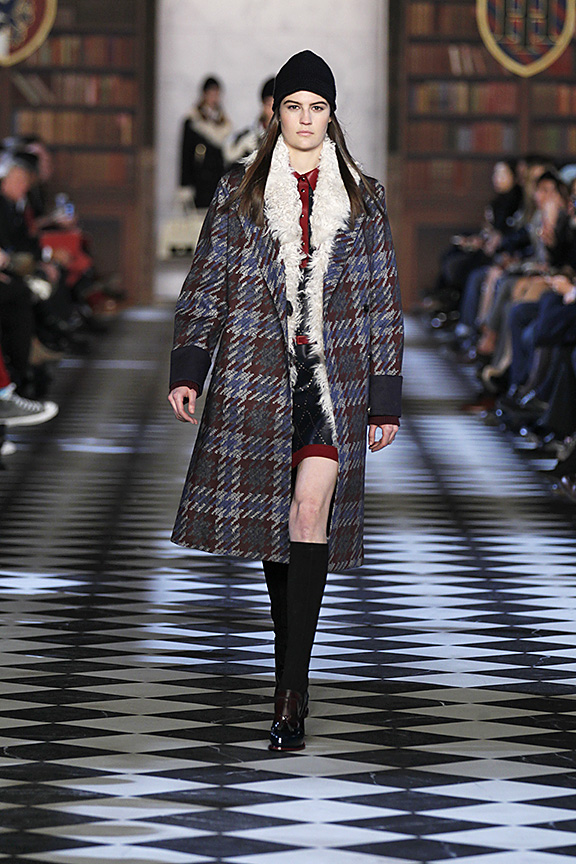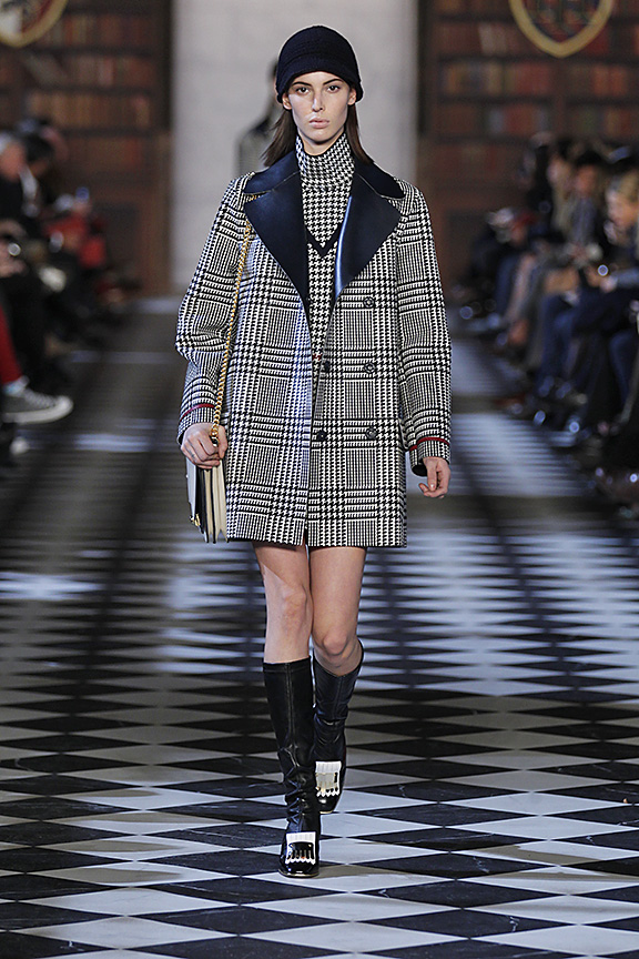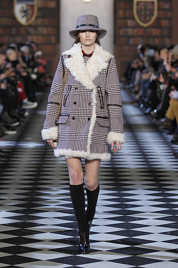 В газете Women's Wear Daily осенне-зимнюю коллекцию Томми Хилфигера назвали "Сэвил-Роу встречает Лигу Плюща", вспоминая лондонскую улицу с ателье, где в XIX-XX вв. шили на заказ мужские костюмы и традиционную студенческую униформу американских университетов. А что, вполне оправданно: классическая клетка с мужских костюмов и пальто в британском стиле переместилась на короткие шорты, юбки и двубортные пиджаки. Перед нами — студентка Гарварда, которая летом ходит на занятия в костюме-двойке, высоких чулках и шляпе, зимой — в пальто, отороченном мехом, и аккуратной шапочке, а для вечера у нее приготовлен идеально скроенный белый костюм. Ее любимый модельер — Томми Наттер, любимое модное десятилетие — свингующие 60-е, а главные примеры для подражания — Beatles, Джаггер и Твигги, выходцы все с той же Сэвил-Роу.