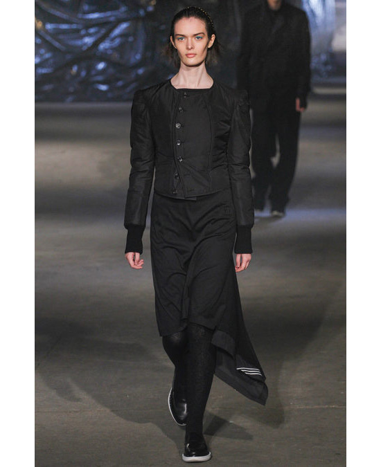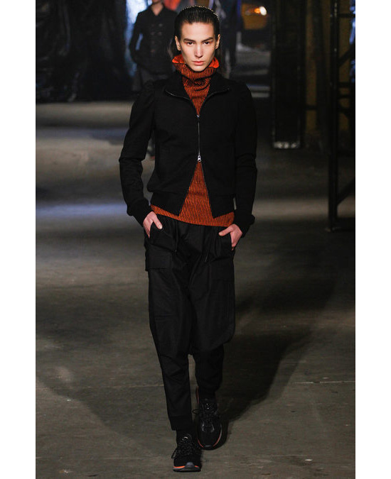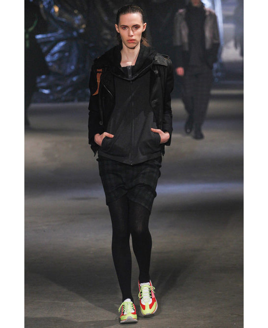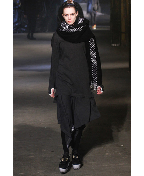 В коллекции осень-зима 2013/14 японский дизайнер Йоджи Ямамото вновь, как и в прошлом сезоне, обратился к теме "назад в будущее". Идея воплотилась в футуристичных спортивных шортах, объемных шарфах, длинных футболках, широченных клетчатых брюках и - в доказательство популярности спортивной тематики - ярких кроссовках и перчатках. "Коллекция получилась более чем уместной, - написали в блоге Fashionista, - мы не удивились бы, если бы увидели, скажем, рэпера ASAP Rocky, который, кстати, сидел на шоу в первом ряду, в вещах из этой коллекции".