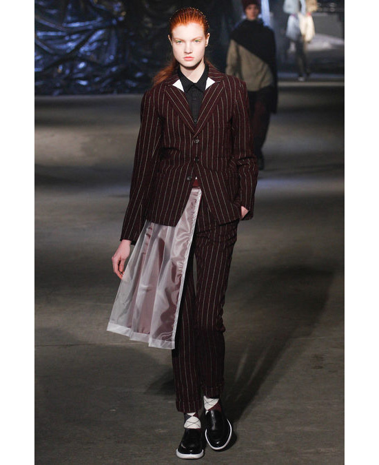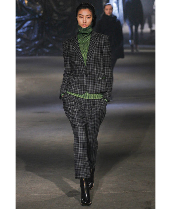 В следующем году бренд DKNY отпразднует 25-летие. Дизайнер Донна Каран рассматривает это событие не иначе как повод вернуться к истокам и посмотреть на первые коллекции по-новому, современно. Первые результаты этой переработки мы увидели в капсульной коллекции DKNY для Opening Ceremony, которая поступит в продажу 14 февраля, а вторая порция пришлась на осенне-зимнюю коллекцию бренда. Гранжевые черные шапки, огромные пальто с покатыми плечами, бомберы, переделанные в джинсовые куртки, и тяжелые ботинки оттуда же, из 90-х. В качестве напоминания о том, что действие проходит все же не в конце XX века, а в первой четверти XXI-го, за спинами моделей в виде ленты из Instagram одна за другой крутились фото Нью-Йорка, отлично сочетающиеся с цветовой палитрой — красным, цветом пожарных машин, и скьяпареллевским розовым, известным как "шокинг". "Молодые поклонники бренда точно примут эту коллекцию, а те, кто был с ним с самого начала, получат классику, которую когда-то полюбили, в новом прочтении — современном и свежем", — написали о коллекции в Vogue US.