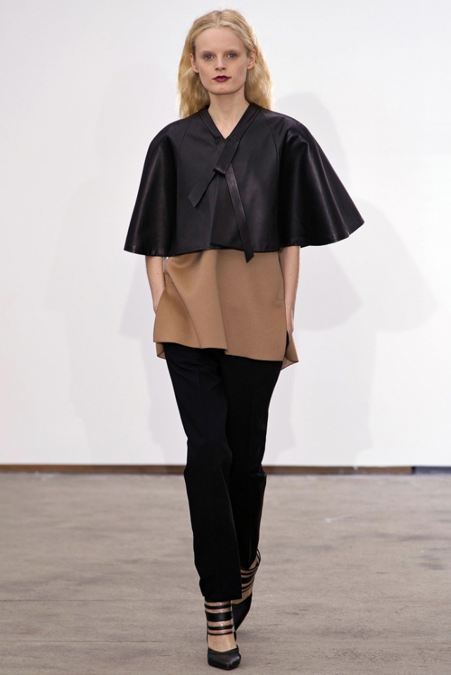 На Style.com коллекцию Дерека Лэма щедро похвалили. "Дерек Лэм как никогда хорош. Он покинул пост в Tod's почти год назад, и сейчас кажется, что он воспользовался своим освободившимся временем для того, чтобы узнать себя и свою клиентку," — написала о коллекции исполнительный редактор сайта Николь Фелпс. Ее мнение — слова не просто красивые, но и весьма справедливые. Девушка Derek Lam, по словам самого дизайнера, оказалась "богемной в современном, контролируемом отношении". Очевидно, под этим он имел в виду, что кружевное платье она скорее не выставит напоказ, а закроет объемным, жестким, мужским жакетом, а облегающее тело боди дополнит клешеной кожаной юбкой длиной чуть ниже колена. И уж, конечно, ей, как и нам, придется по душе образ с сине-белым сатиновым топом и нарочито свободными в своем крое, но узкими в бедрах брюками. Николь Фелпс нашла этот лук лучшим во всей коллекции.