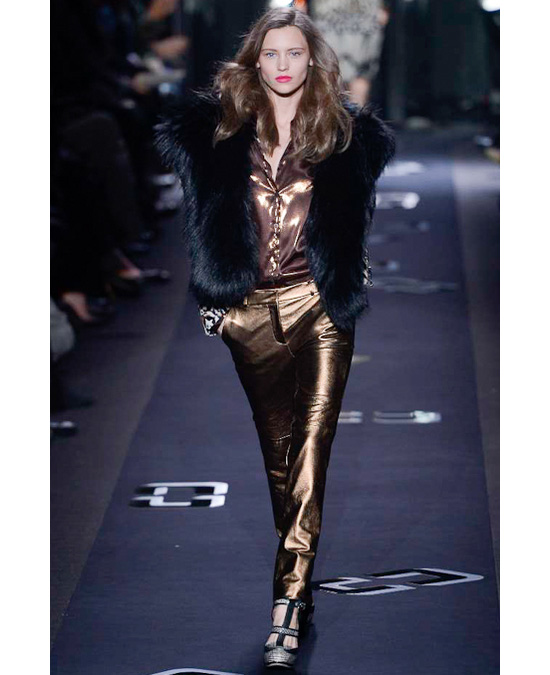 "Вся жизнь — сплошная вечеринка" и глэм-рок стали темами показа Diane von Furstenberg", — пишет Эрик Уилсон из NY Times. Модели выходили на подиум под звуки микса из песен Донны Саммер Love to Love Yo Baby и More, More, More Андреа Тру, демонстрируя идеально сидящие костюмы цвета фуксии, роскошные шубы, брюки металлических цветов и узкие цветные комбинезоны. Ни дать ни взять золотая молодежь времен "Студии 54", Ива Сен-Лорана, Бетти Катру и Бьянки Джаггер! Такая же отважная — эти ребята даже в холода легко пойдут на вечеринку в пальто с меховым воротником и босоножках или в платье с запахом, накинув что-нибудь на плечи и распустив длинные волосы.