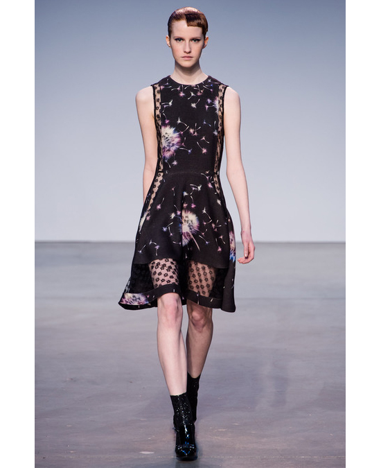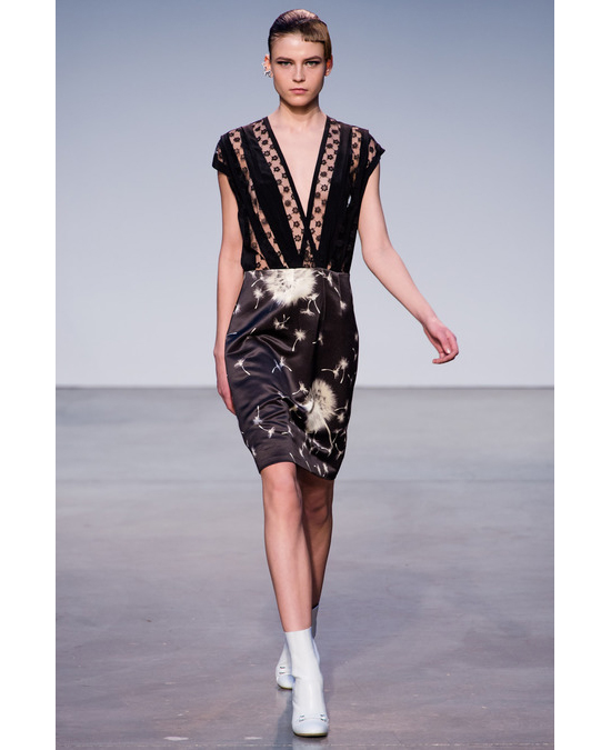 Дизайнер Такун Паничгул рассказал, что вдохновение к созданию осенне-зимней коллекции пришло к нему во время прочтения романа Рэя Брэдбери "Вино из одуванчиков". Идея "поймать лето и закупорить его в бутылке" воплотилась в платьях цвета лаванды с принтом из одуванчиков и кружевными вставками, топе с изображением стрекозы, жакете с россыпью розовых лепестков и лоферах, которые так хочется скинуть, чтобы пойти босиком по траве. Даже мех у Такуна выглядел по-летнему — тонким, гладким, почти прозрачным. "Паничгул в своих попытках сохранить магию лета проявил себя весьма креативно", — написала о коллекции редактор Style.com Николь Фелпс. Соглашаемся безоговорочно.