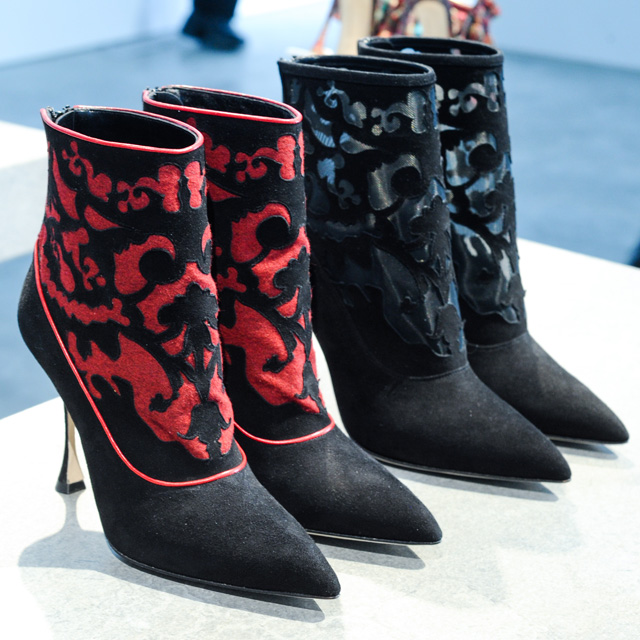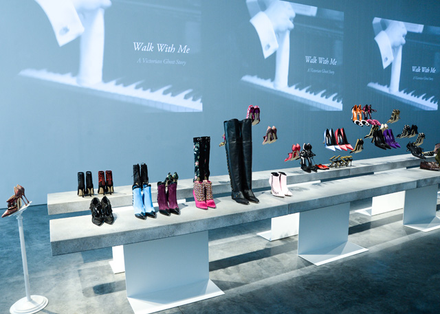 Презентация была оформлена как арт-инсталляция: туфельки скользили вверх и вниз под музыкальное сопровождение фильмов Майкла Робертса. Главными темами новой коллекции стали одежда викторианской эпохи и, как ни удивительно, древняя цивилизация этрусков.