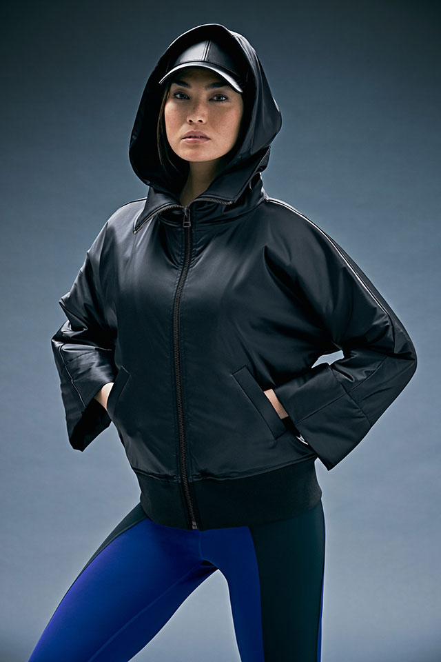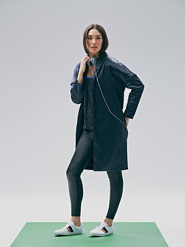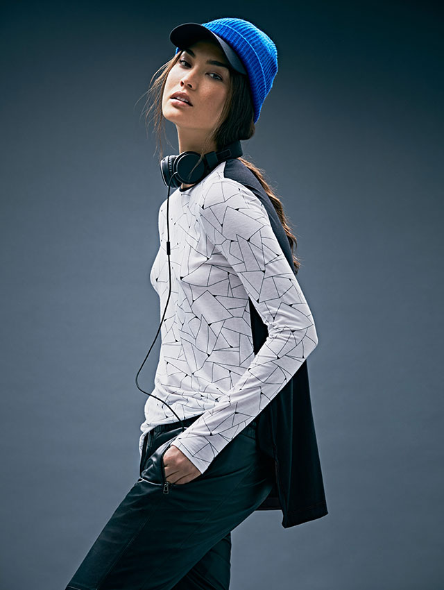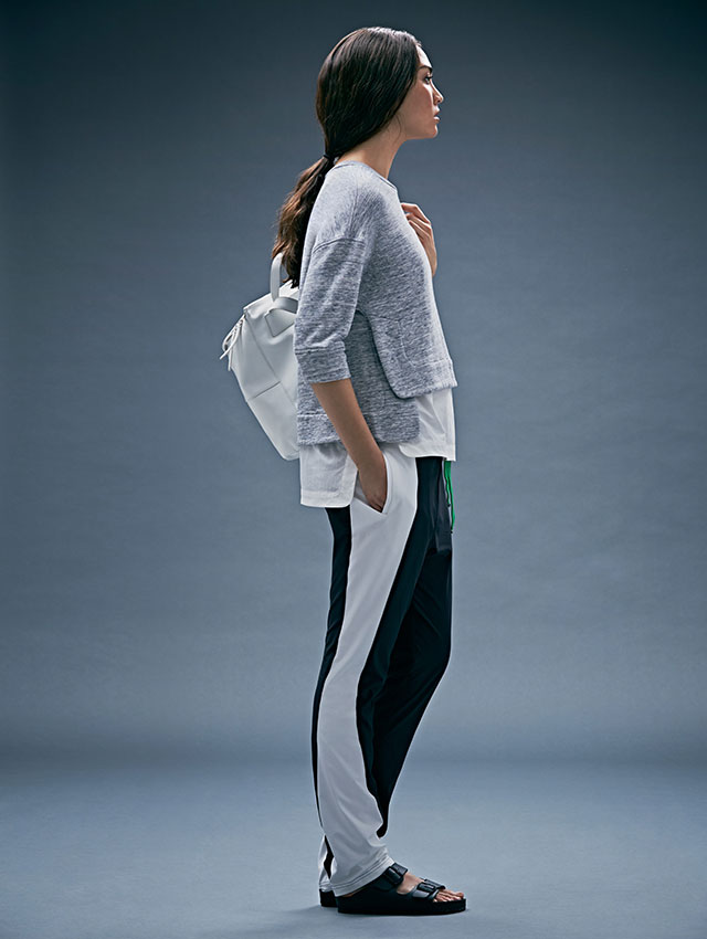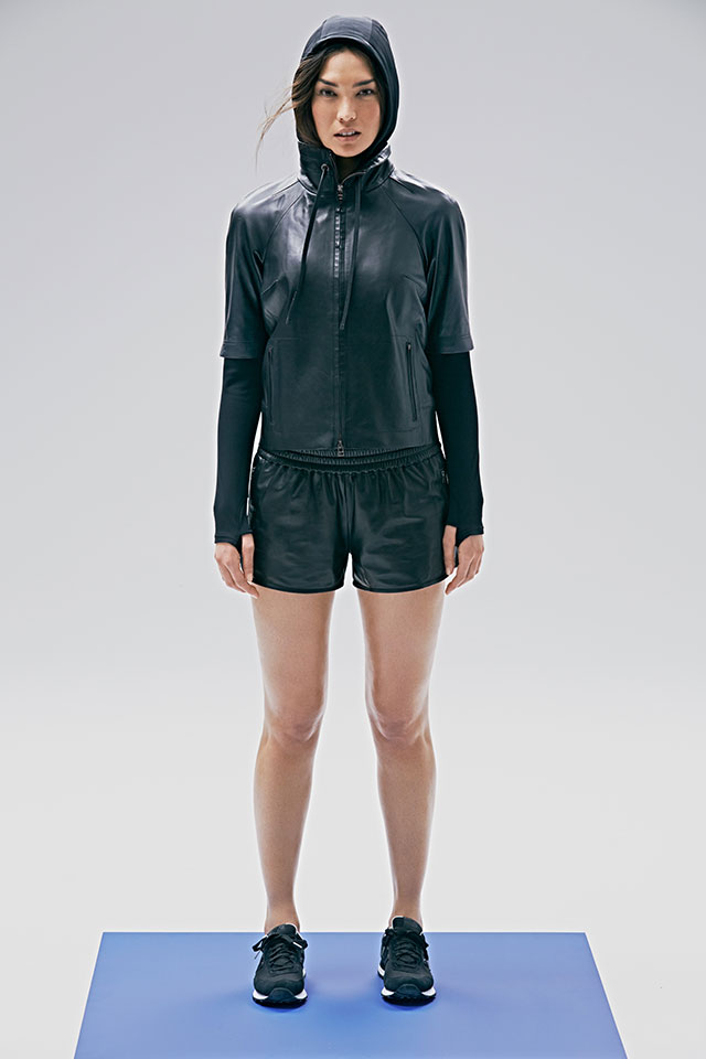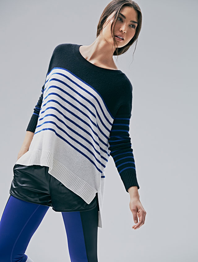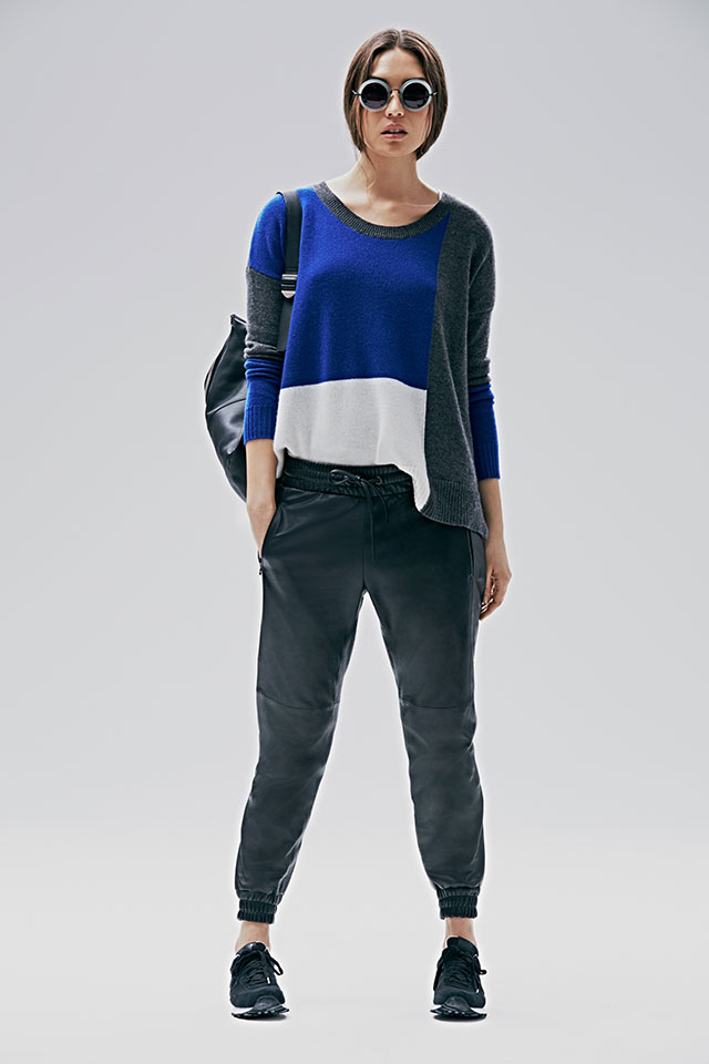 Самыми яркими предметами из совместной коллекции Derek Lam и Athleta стали те, что созданы изначально для занятий спортом и только для них. То есть легинсы и спортивные топы, особенно раскрашенные по принципу color blocking. Они на снимках выглядят наиболее эффектно. Кожаные треники и кашемировые свитера такого яркого впечатления не производят и из общего ряда как-то выбиваются — спортивная часть выглядит намного убедительней лайфстайловой.