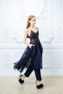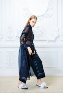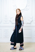 Сложный многоуровневый микс различных эпох, культур, женственности и андрогинности — именно так можно охарактеризовать осенне-зимнюю коллекцию Graviteight. Топы из костюмной ткани в ней выступают в дуэте с юбками-тюльпанами. Безразмерные «растянутые» джемперы надеваются поверх кружевных платьев-комбинаций или в комплекте с пышными жаккардовыми юбками. Туники со шлейфами сочетаются с широкими брюками-кюлотами. Сорочки из органзы идут в паре с классическими брюками или юбкой-карандаш. А дубленки-перевертыши перевязываются широкими шелковыми поясами.