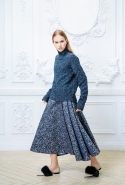 Еще один эстетический ориентир — эстетика 50-х, которая угадывается в коллекции в виде «гусиных лапок» и женственных силуэтов.
