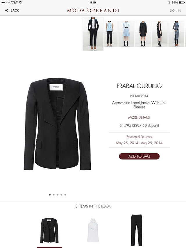 С помощью приложения можно ставить "лайки" подиумным образам, чтобы потом получить уведомление, когда эти вещи появятся в продаже. "В отличие от других приложений интернет-магазинов, которые позволяют "лайкать" наряды с подиума, наше позволяет также получить эти вещи сразу, как только они появятся в продаже, совершить предзаказ. И не нужно искать понравившиеся вещи по всем сайтам через полгода, чтобы купить их", — рассказала Элизабет Кордри, директор по закупкам Moda Operandi.