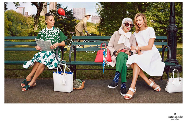 В том, что возраст — вовсе не помеха красоте и успеху, великие мира моды убеждают нас уже второй сезон подряд. Все чаще в рекламных кампаниях появляются модели, давно вышедшие из возраста 19-летних кривляющихся девчонок и загорелых «ангелов», шагающих по подиуму с накладными крыльями за спиной. Очередным подтверждением того, что взросление больше не воспринимается как проклятие или небесная кара, стала весенне-летняя реклама Kate Spade. На главные роли были приглашены топ-модель Карли Клосс и Айрис Апфель, одной из которых 22 года, а второй — в четыре раза больше, 93 года.