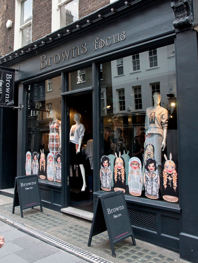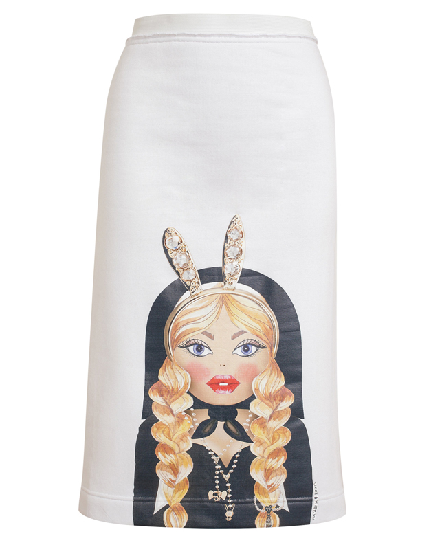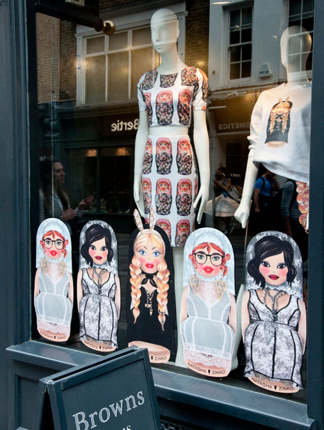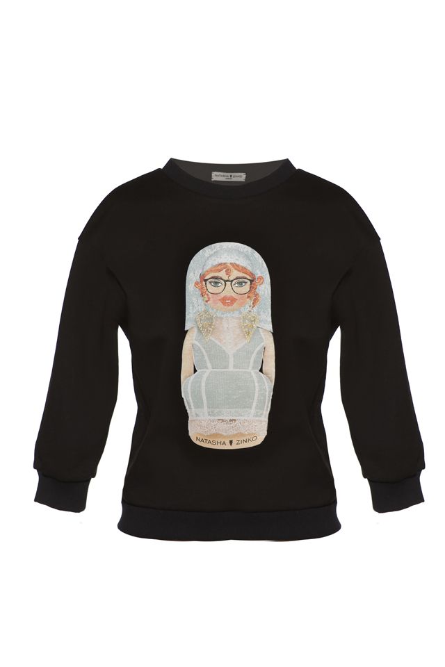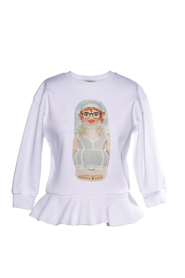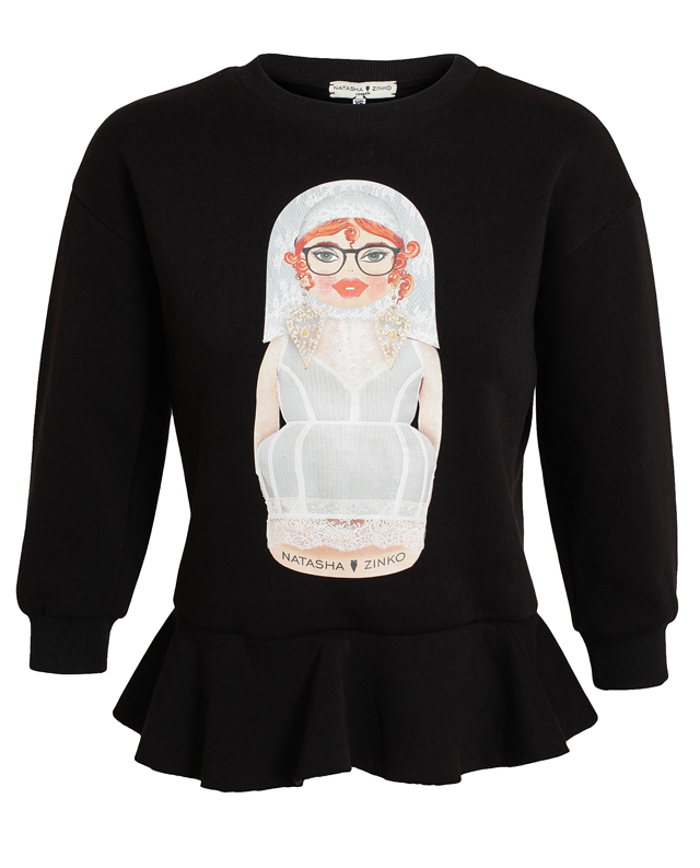 Наташа создала трех очень разных кукол, со своими характерами и историями, и нарядила их в вещи из своей весенней коллекции. Они и легли в основу капсулы Natasha Zinko для Browns, став принтами на женственных свитшотах с басками и без и юбках-карандашах. "Я решила поиграть с матрешками и принарядить их, как маленькая девочка, играющая со своими куклами. Этим матрешкам досталась одежда и украшения из моей весенней коллекции. В результате получились три очень стильных матрешки, каждая со своим особенным характером", — рассказывает сама Наташа.
