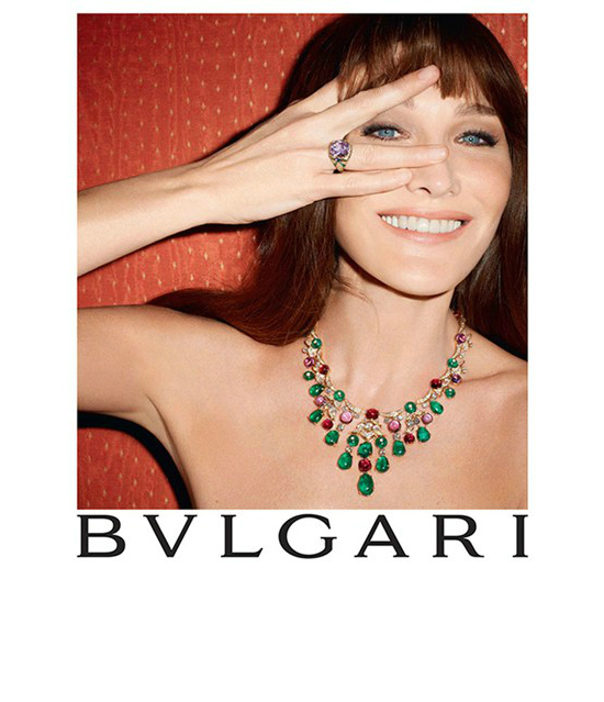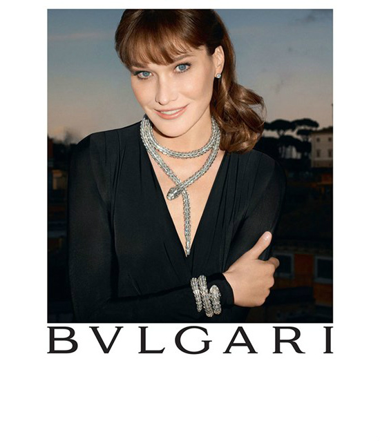 Лицом новой рекламной кампании Bulgari, первые кадры которой сегодня появились в сети, стала Карла Бруни — бывшая первая леди Франции, а также певица и автор песен. Бруни рассказала, что решила впервые позировать для съемки Bulgari из своей большой любви к ювелирным украшениям и уважению к исторической итальянской марке, чьи браслеты любила носить ее тетя.