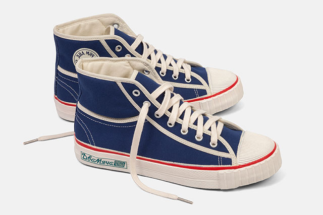 Полностью восстановить дизайн кед, в которых гоняли по футбольным полям и городским улицам советские модники 40 лет назад, взялся Евгений Райков — основатель и идеолог бренда «Два мяча». Реставрация традиций — дело небыстрое: Евгению понадобилось три года, чтобы кеды появились на полках современных универмагов и в интернет-продаже, но оно того стоило. Все ключевые признаки модели соблюдены: зеленая подошва и вручную промазанный резиной шов, а главное — логотипы-нашивки. Первыми для покупки будут доступны несколько низких моделей и одна высокая, но позже линейку обещают расширить. Кеды повыше будут стоить 4600 руб., низкие — от 3900 до 4400 руб. В онлайн-продажу новинка, которую, пожалуй, можно назвать таковой с натяжкой, поступит сегодня, 6 июля, а 13-го кеды появятся в «Цветном».