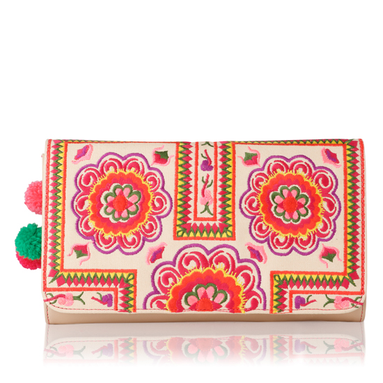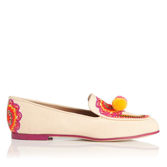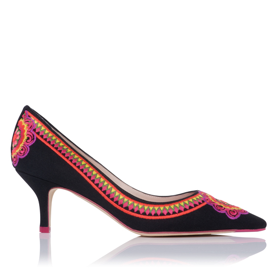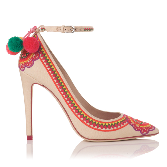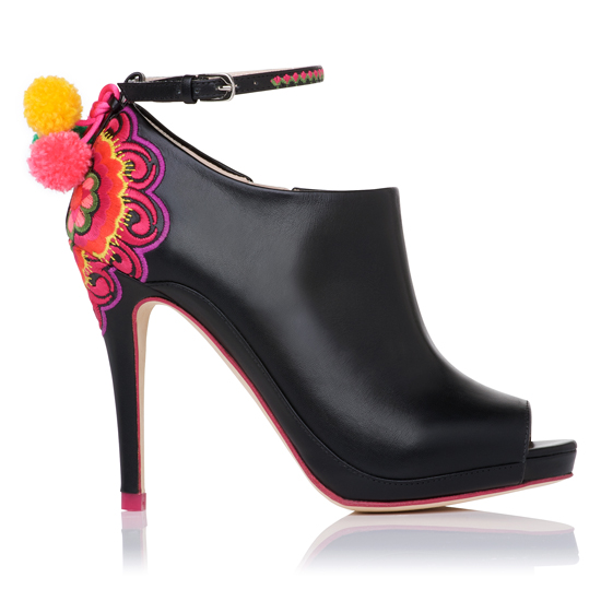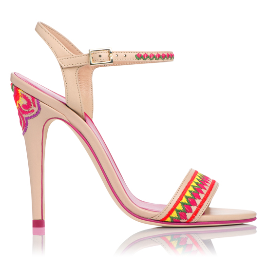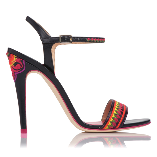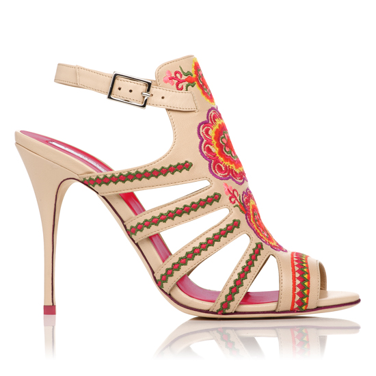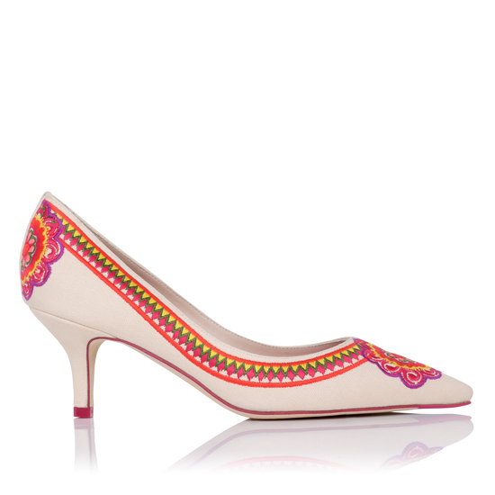 В коллекции представлены шесть пар кожаных туфель и два клатча, украшенные вышивкой неоново-розовыми, оранжевыми, зелеными и желтыми нитями в виде цветов или орнамента. Из обуви можно выбирать между лодочками на маленьком каблучке, лоферами, босоножками с ремешком вокруг щиколотки, туфлями с ремешком и разноцветными помпонами и ботильонами — с открытым носком или более летними, с прорезями. Сумок в коллекции две — мягкий клатч, по форме напоминающий кошелек, а также клатч-коробочка. Любую пару обуви и любую сумку начиная с 19 февраля можно будет приобрести в магазинах L.K. Bennett в Лондоне, а также онлайн, на официальном сайте бренда.