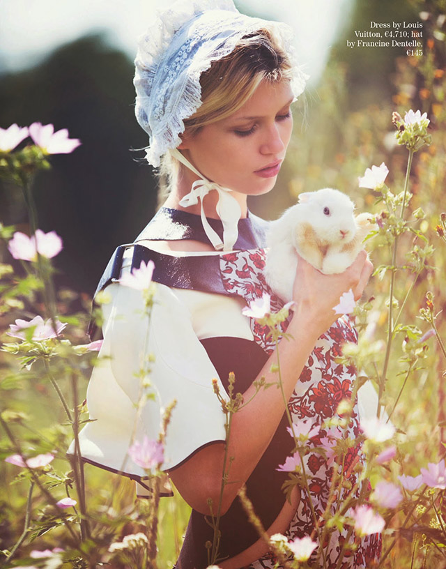 Даже на этих живописных кадрах лето, впрочем, запечатлено уже позднее — словно за пару дней, а то и часов до наступления осени. Солнечный свет наполняет залы пустого дома и заливает заросшие высокой травой поляны, но ни теплые фотофильтры, ни белые и почти невесомые наряды, подобранные стилистом Мелани Хайн, не обманут читателя. Да и сама Хана Жирикова похожа скорее не на красавицу, приехавшую в собственный загородный дом, чтобы не упустить последние дни лета, а на сказочное существо, которое жило в этих краях всегда. И фотографу Дэвиду Беллемеру мастерски удается поддерживать эту полуреальную атмосферу в каждом кадре.