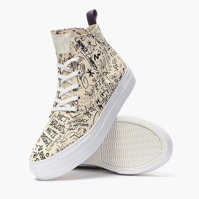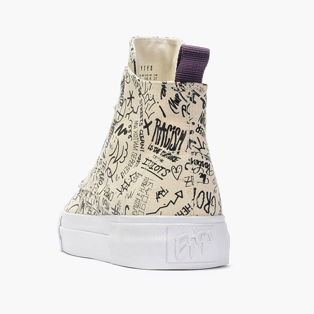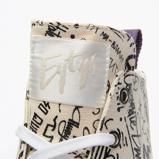 Opening Ceremony опубликовали первое фото новой пары обуви, которая стала результатом сотрудничества киевского художника Саши Курмаза и шведского обувного бренда EYTYS. По сообщению автора, на создание такого дизайна его вдохновила революция. Высокие белые кеды на толстой резиновой подошве расписаны дерзкими фразами на разных языках мира, среди которых отчетливо видны: «Enjoy without chains», «Змiст нашого життя боротьба», «Democracy is wathing you».