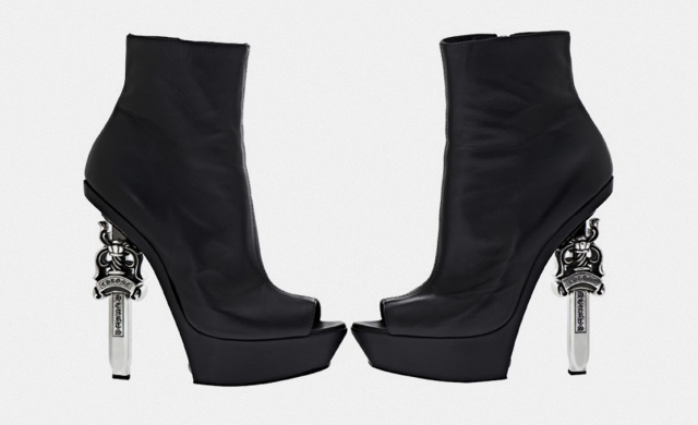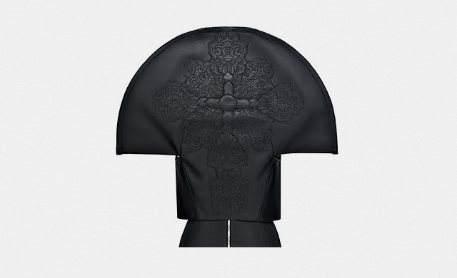 Сюрреалистичный, неземной и мрачный стиль вещей Гарета Пью встречается с рок-н-ролльной эстетикой Chrome Hearts — результатом совместной работы стала коллекция из 14 предметов. Юбки в пол, структурные жакеты с кожаными "нимбами", топы-бюстье и аксессуары — все, конечно же, черного цвета с вкраплениями серебра. Основой для коллаборации стали три образа из весенне-летней коллекции Gareth Pugh.
