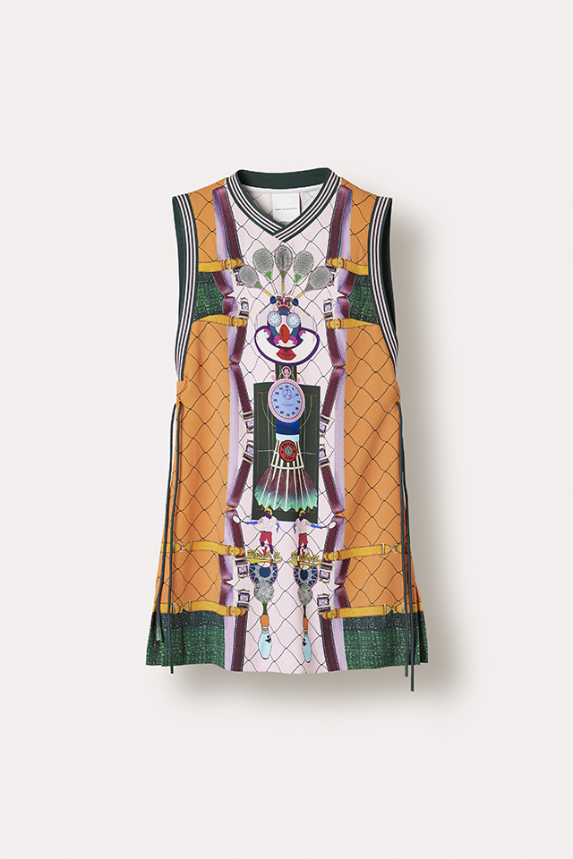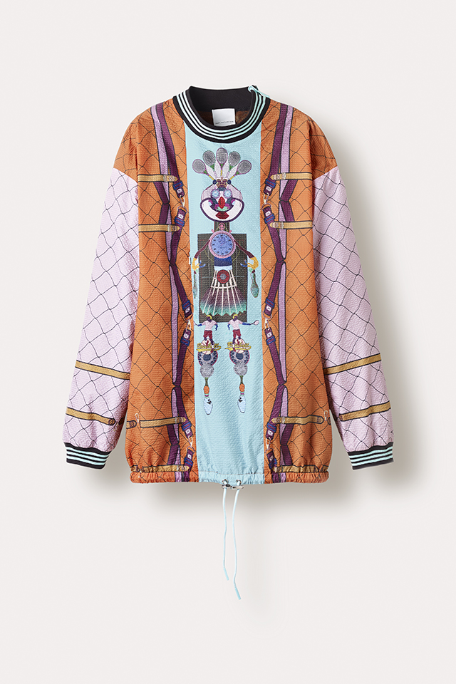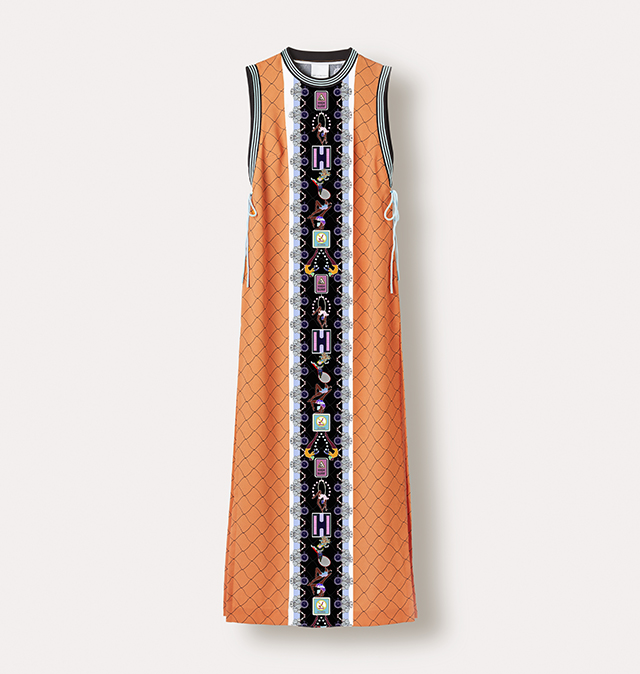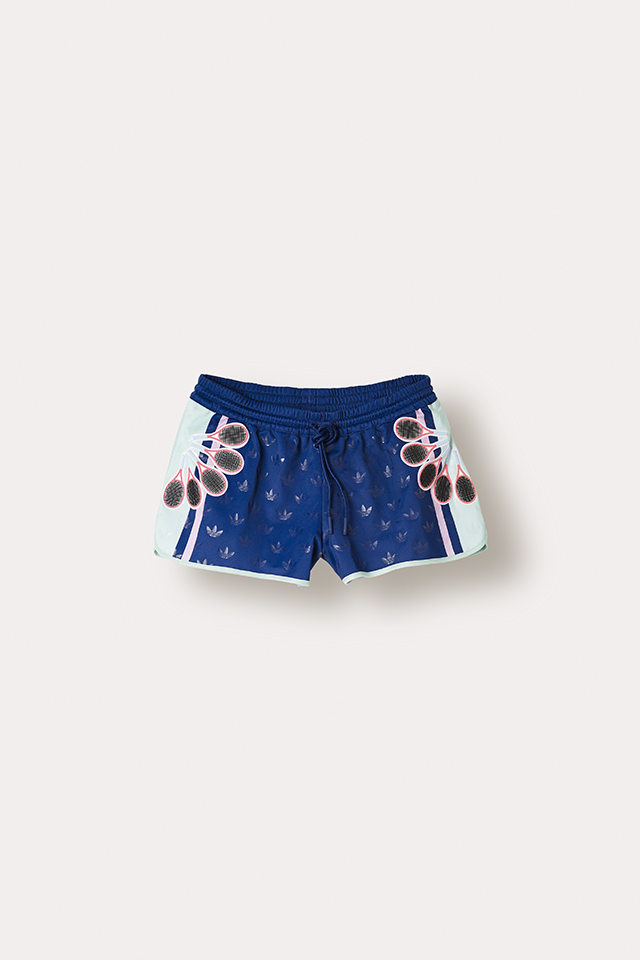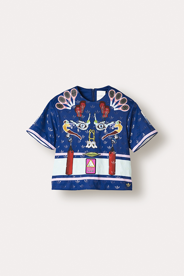 На этот раз обошлось без платьев-кроссовок, которыми запомнилась нам первая коллаборация adidas Originals и Mary Katrantzou. Весенняя коллекция получилась чуть менее эпатажной, хотя все вещи по-прежнему покрыты принтами практически целиком — и носить их, пожалуй, будет куда проще. Длинные платья, симпатичные платьица-трапеции, спортивные брюки и футболки, слитные купальники и новые вариации знаменитых кроссовок adidas Superstar, которые в этом году отмечают юбилей и пережили уже не одну трансформацию, — выбор покупателям предоставляется широкий. Переосмыслила Катранзу и модель Flux Tech, разрисовав ее своими фирменными узорами. В основу принтов на этот раз легли узнаваемые предметы, необходимые для занятий спортом: от секундомеров до воланчиков для бадминтона.