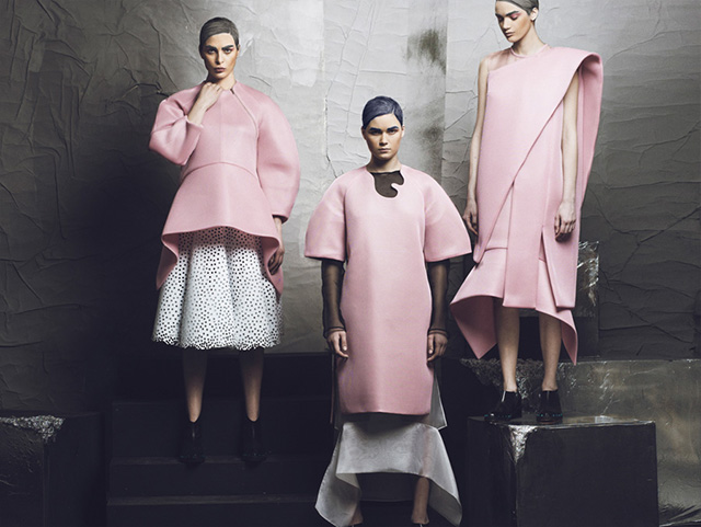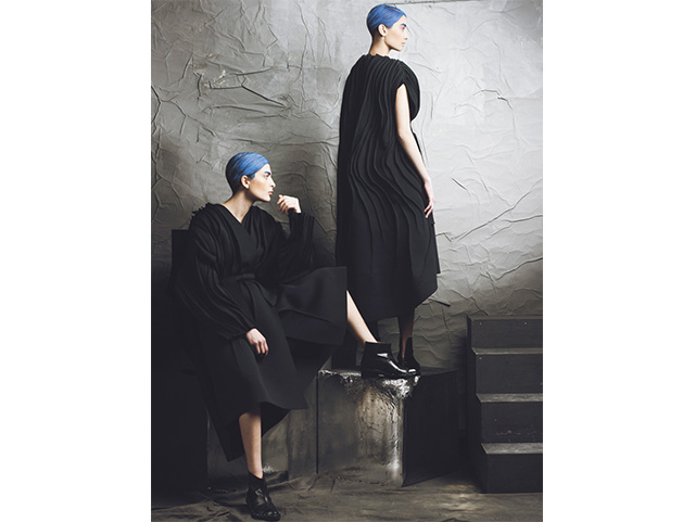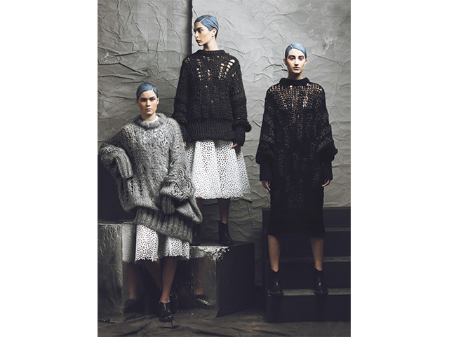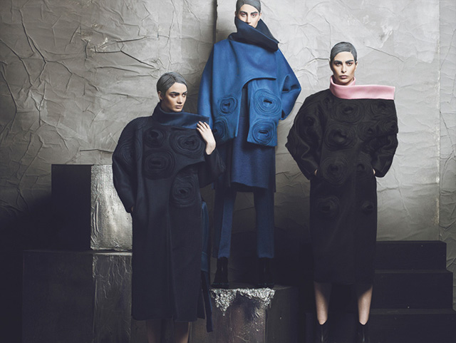 Главная мысль, лежащая в основе всей коллекции, — идея о Земле как о живом существе, которое развивается и постоянно меняется, как создает, так и убивает свои творения. Ладо Бокучава и его жена, по совместительству главный конструктор Atelier Kikala, искали вдохновение в окружающей природе, в вулканах, засохших пустынях, океане, даже в воздухе — во всем том, что по правилам русского языка считается неживым и на самом деле не дышит, но имеет свой характер и способность перерождаться. Результатом стали и «гофрированные» вещи, складки на которых напоминают застывшую лаву, и похожие на кратеры вулканов завихрения ткани, и темные, монументальные силуэты, и легкие, воздушные детали. Передать эту легкость помогает перфорация — прием, ставший частью узнаваемого стиля марки.