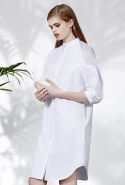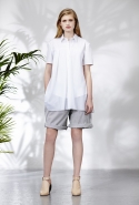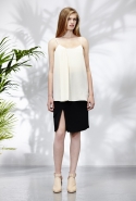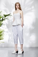 В коллекции, которую мы условно назвали "до и после пляжа", дизайнер попытался найти точку соприкосновения двух разных жизней — повседневной и отпускной. Так, платье с защипами напоминает мокрое полотенце, обернутое вокруг тела после купания, а под полупрозрачной белой рубашкой, кажется, можно различить контуры купальника.