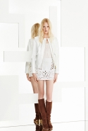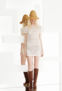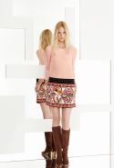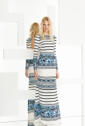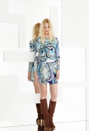 Классические пестрые узоры Emilio Pucci Дундас на этот раз сочетает с моряцкой бретонской полоской и — вот это действительно неожиданность! — использует мотивы с сардинских ковров. Они вдохновили дизайнера на создание обширной линейки вязаных мини-платьев с бахромой по подолу, составивших основу новой коллекции. Мини — главная постоянная круиза Emilio Pucci: кроме платьев здесь есть и мини-шорты, и короткие юбки, длине которых удивилась бы даже длинноногая Твигги, и просто бикини, надетые с легкими пестрыми плащиками. А благодаря замшевым сапогам и вышивкам, использованным на многих вещах, все это очень напоминает о стиле хиппи.