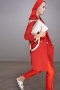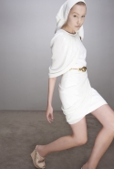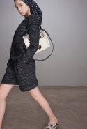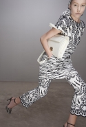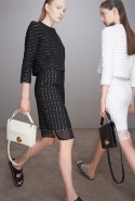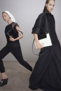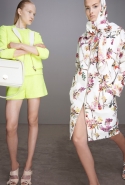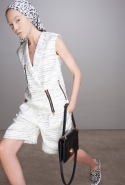 Модели в широких юбках-солнце, легких топах, босоножках на танкетке и косынках и правда напоминали смелых и озорных девчонок из голливудского кино 30-х годов. Надев пальто, лодочки без задника и повязав на голову платок с цветочным узором, они хватали под мышку белоснежную сумку-портфель, а может — просто вешали ее на плечо или брали за ручку. Костюм с пиджаком и шортами дизайнер стилизовал вместе с сандалиями в духе Birkenstock, платья смело одевал поверх брюк, а легкие пальто подпоясывал курткой с длинными рукавами.