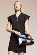 Леон и Лим также создали сумку геометрической формы с неслучайным названием California, а главным украшением стали подвески в виде вытянутых капель синего и зеленого цветов, по форме напоминающие то ли доски для серфинга, то ли волны Тихого океана.