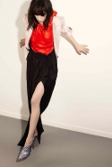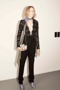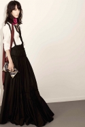 Никаких огромных шляп, гор из твидовых оборок и складок блестящей кожи и атласа — хотя полного минимализма от Альбера Эльбаза, любимца публики и креативного директора Lanvin, конечно, никто не ждал и, к счастью, не дождался. Так что без бантов, красных роз на присборенных воротничках, вышивок, меховых воротников и пары кружевных ленточек дело все-таки не обошлось, хотя простые платья-трапеции и пижамно-брючные костюмы тоже имеют место быть. Но некоторые девушки и вовсе похожи на нарядно упакованные, обвязанные узорчатой тесьмой подарки, которые впору сразу класть яркими рядами под елку. Похоже, представление о человеческих потребностях у Альбера Эльбаза все-таки несколько романтизированное — по крайней мере, к первым двум-трем ступеням знаменитой пирамиды Маслоу он точно даже не притрагивается.
