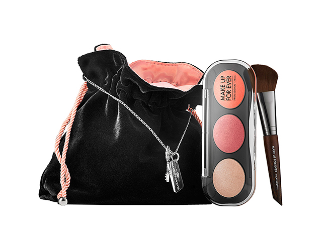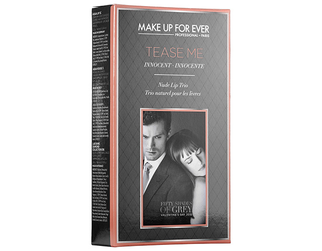 Ко Дню святого Валентина Make Up For Ever приготовили фанатам «50 оттенков серого» настоящий подарок — выпустили капсульную коллекцию по мотивам фильма. Правда, серый цвет в ней как раз практически отсутствует. В линейку вошла палитра румян в коралловой гамме, а также набор мини-средств для полноценного макияжа. Среди них — помада и блеск для губ кирпичного цвета, черная подводка и тушь, а также палитра теней в коричневой гамме с говорящим названием Give In To Me.