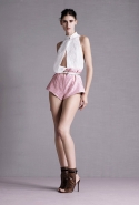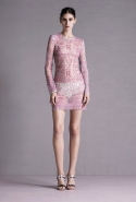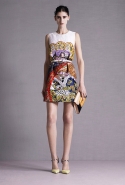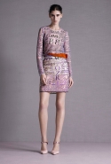 Конечно, принты не исчезают совсем, вовсе нет. Отказываться от того, что уже стало визитной карточкой марки и принесло Мэри славу, было бы глупо. Но зацикливаться на одних только принтах нельзя: во-первых, это не такой уж интересный в творческом плане ход, во-вторых, он очень быстро становится однообразным. Поэтому Мэри Катранзу выбирает путь эволюции, а не революции. Принты меняются, становясь не абстрактными, а сюжетными, при этом теряя свою ведущую позицию. Рисунки с птицами в цветах хороши и, конечно, привлекают внимание, но построена коллекция не на них, а на вышитых буковках, стеганых узорах и других вариациях на тему алфавита. Особенно хороши буквы, утопающие в пастельно-нежном кружеве и "выгравированные" на мерцающем жаккарде. Или платья, представляющие собой полотна-аппликации с их участием, похожие одновременно и на японские гравюры, и на странички из старинной "Азбуки".