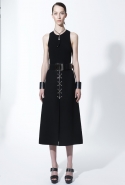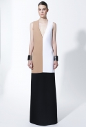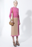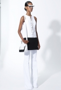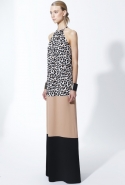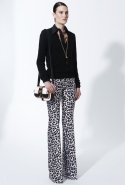 Палм-Спрингс — городок в долине Коачелла, штат Калифорния, и временное место пребывания Майкла Корса — вдохновил дизайнера на создание коллекции не то в стиле сафари, не то в стиле 70-х. Леопардовый принт, бежевые костюмы с брюками-клеш, золотые украшения, обувь и сумки из кожи питона. А вместе с тем — дух современности, воплощенный в босоножках с прозрачным каблуком и массивных "гоночных" очках (похожие были в весенне-летней коллекции Michael Kors).