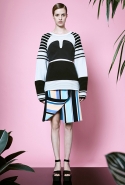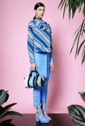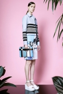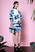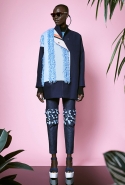 Основные цвета круизной коллекции — синий и его оттенки, хотя и без оригинальных принтов не обошлось. Особый интерес покупательниц должен вызвать деним, который щедро использован в коллекции: юбки сложного кроя, брюки с бахромой и даже аксессуары. Однако Умберто Леон спешит успокоить бренды, для которых деним имеет историческую значимость: Opening Ceremony не стремятся составить им конкуренцию и лишь в очередной раз экспериментируют.