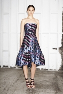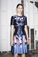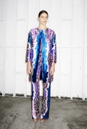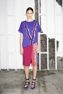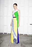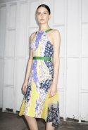 Хотя бумажные листы и бумага вообще обычно ассоциируются с чем-то пустым, чистым (вспомните: начать с чистого листа) и белым, в коллекции Peter Pilotto трудно найти хотя бы одно чистое, не занятое принтами "вырви глаз" пятно. Что, конечно, тоже логично: зачем еще нужна бумага, если ее ничем не заполнять? Принтов в коллекции, по традиции, великое множество: цветочные мотивы, абстрактные изображения природы, полосы-разрывы — дизайнеры работают в коллажной технике, будто склеивая в единое полотно разные пестрые кусочки. Их вдохновляет все, что можно делать с бумагой: можно собрать из обрывков яркий коллаж, оставив рваные бумажные края, можно аккуратно разрезать ее или и вовсе слепить совершенно любую форму из папье-маше.