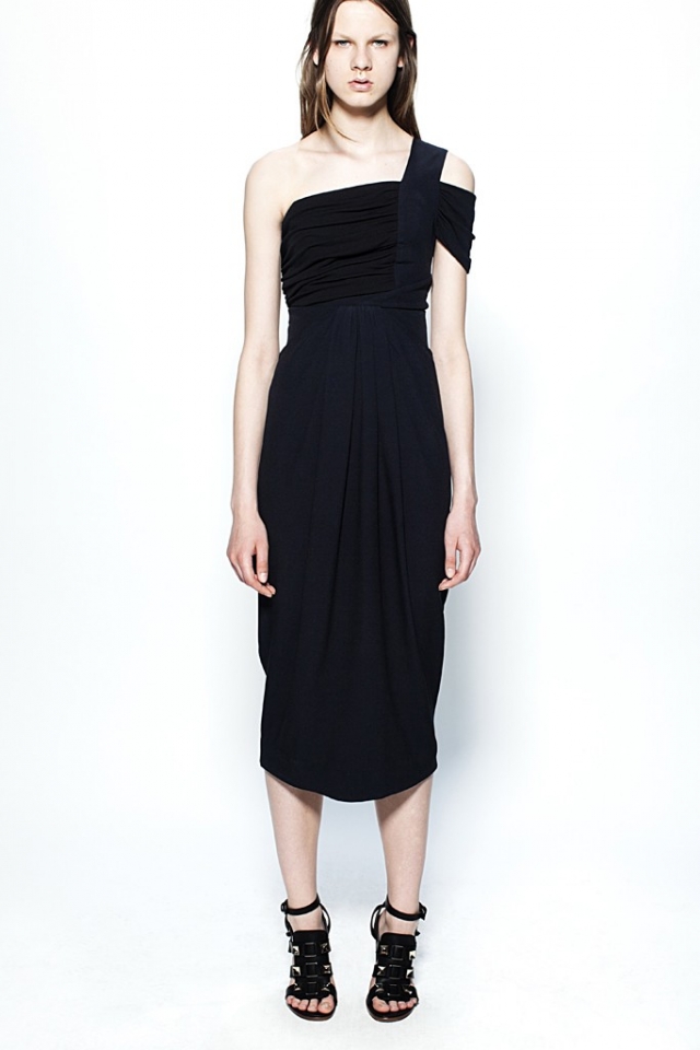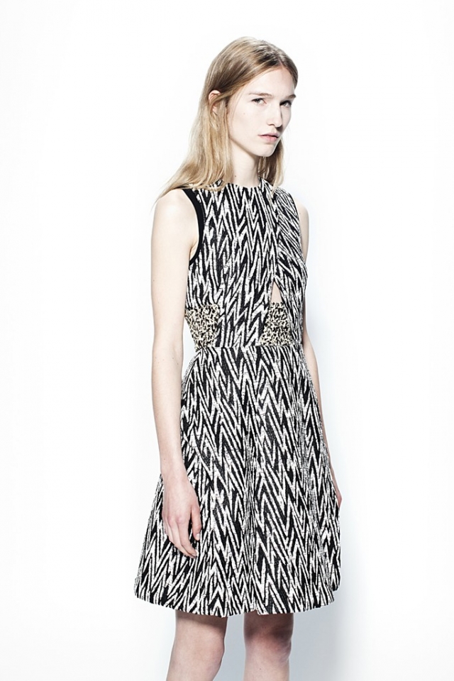 Вышло здорово: многослойные черно-белые образы с плиссированными юбками, сатиновыми блузами навыпуск и жакетами контрастных цветов, костюмы из объемных жакетов и юбок А-силуэта в зигзагообразный принт и черные платья-футляры с драпировками. "Мы никогда не делали этого раньше," — заявил Лазаро Эрнандес. Драпировки — новый вызов, который дизайнеры ставят перед собой в сезоне весна-лето 2014.