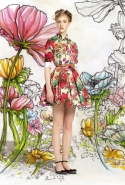 Главной темой новой весенней коллекции Red Valentino стали цветы. Кажется, что модель, позирующая на фоне декораций, щедро проиллюстрированных цветами, попала в выдуманный сад.